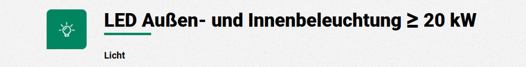 Das Beleuchtungskonzept wird nach den Anforderungen erarbeitet. Mögliche Förderungen werden Projekt bezogen abgestimmt.